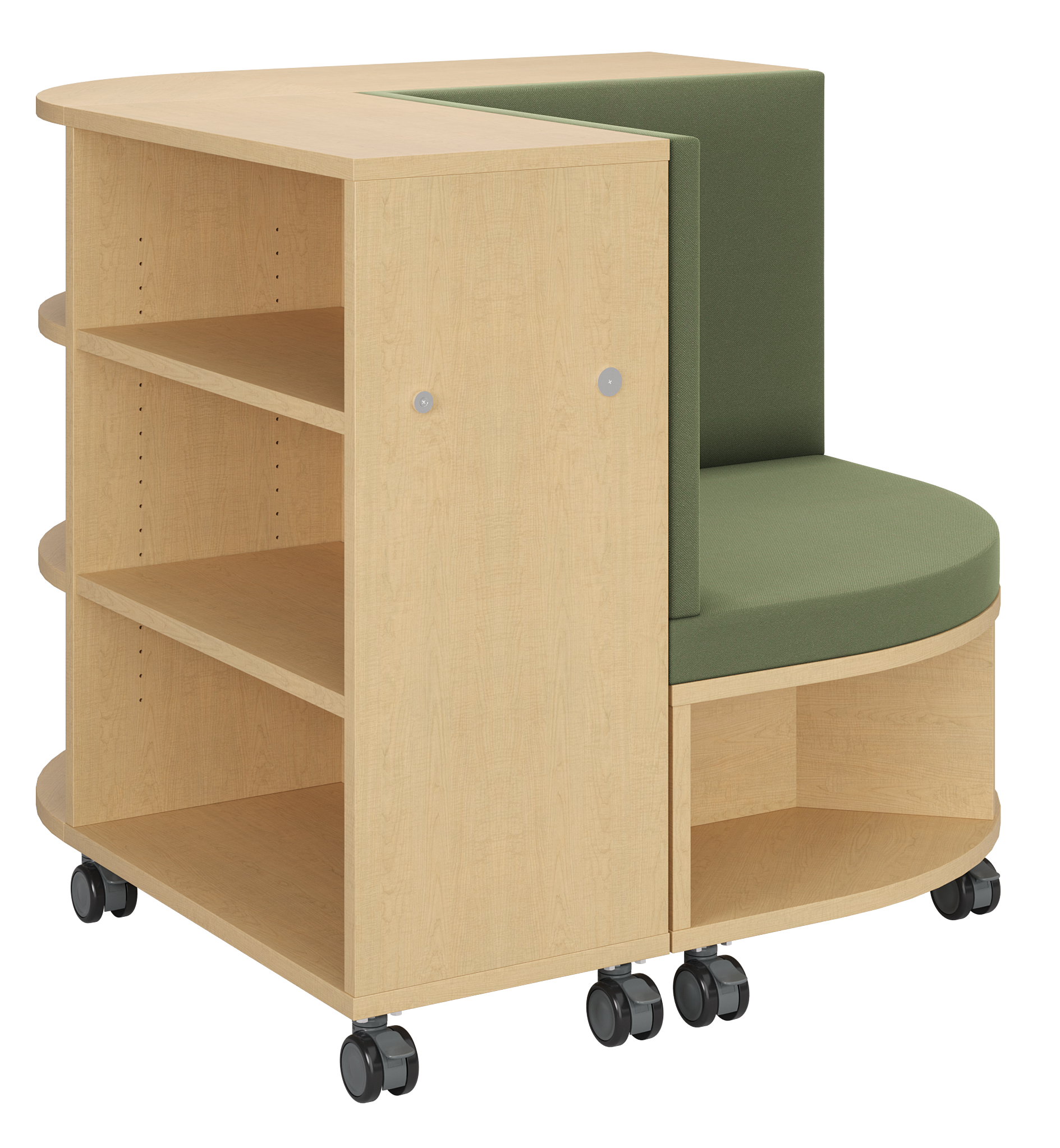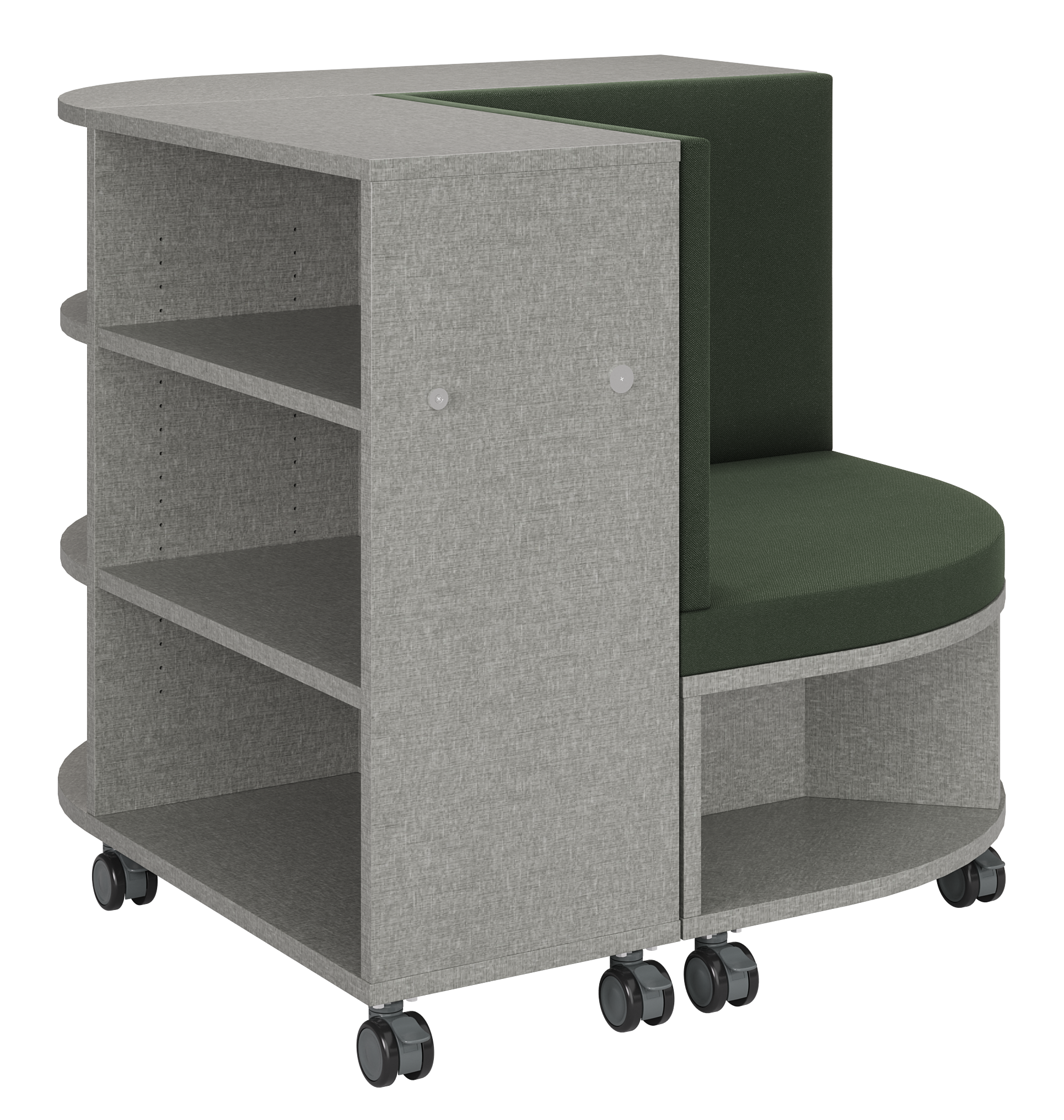 The BookNook creates a cozy retreat anywhere in your learning environment. Use it on its own as a quiet reading corner or connect it to our Linear Mobile Shelving for a seamless media center setup. With a comfy upholstered seat and built-in shelves for easy book access, the BookNook gives students a calm place to recharge, refocus, or enjoy independent reading. Mobile, durable, and designed for real classroom life—this nook invites kids to settle in and slow down.