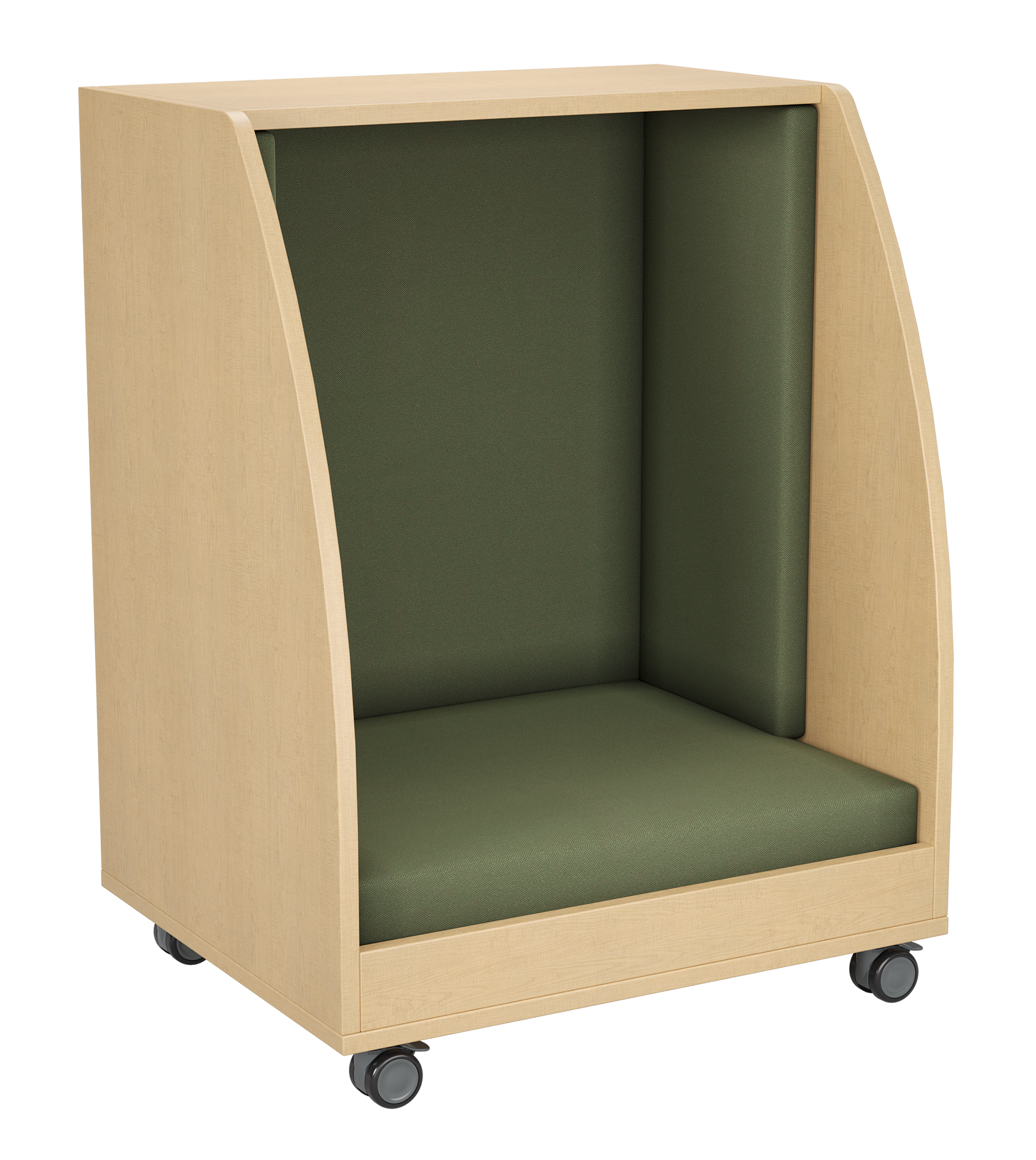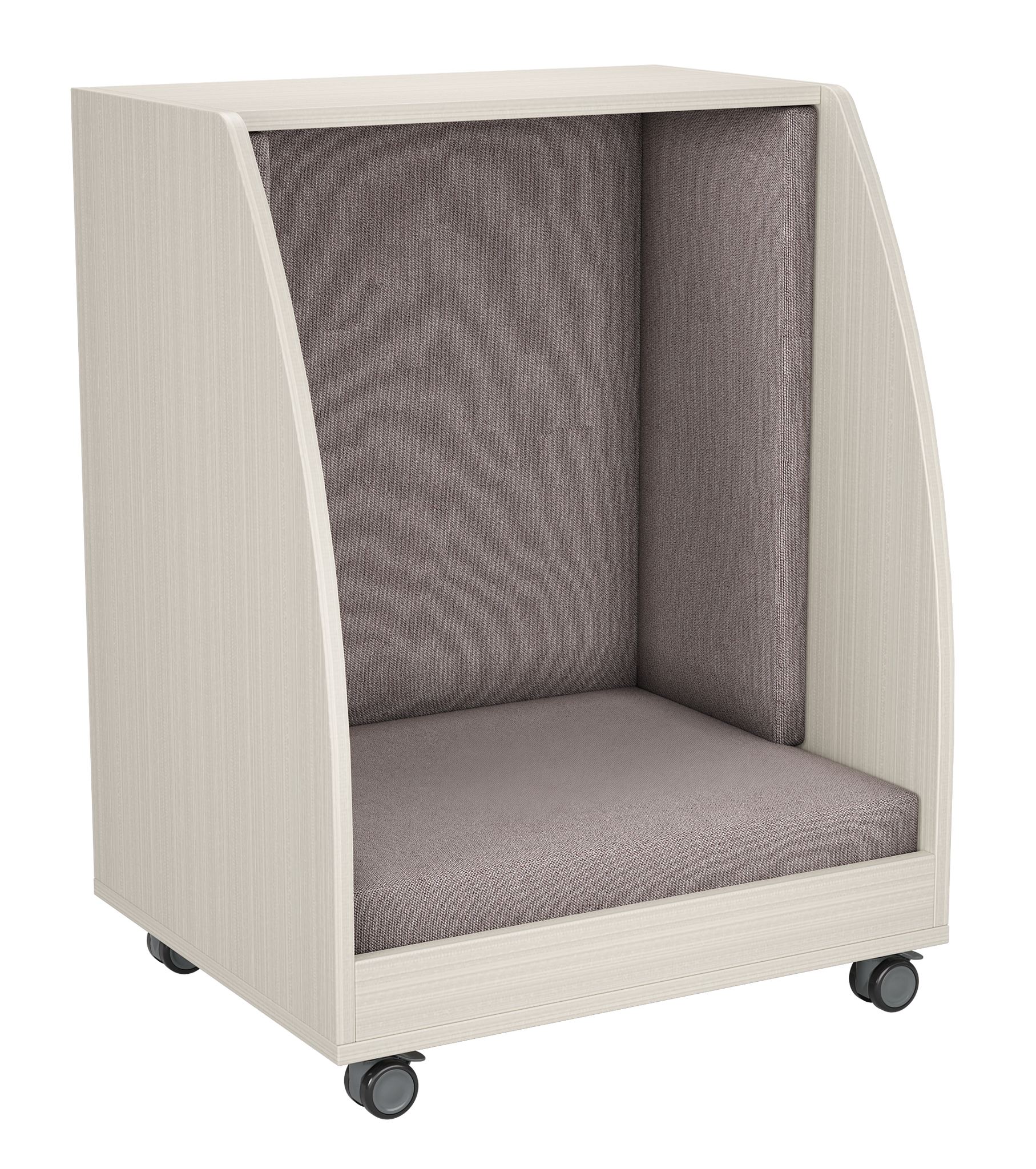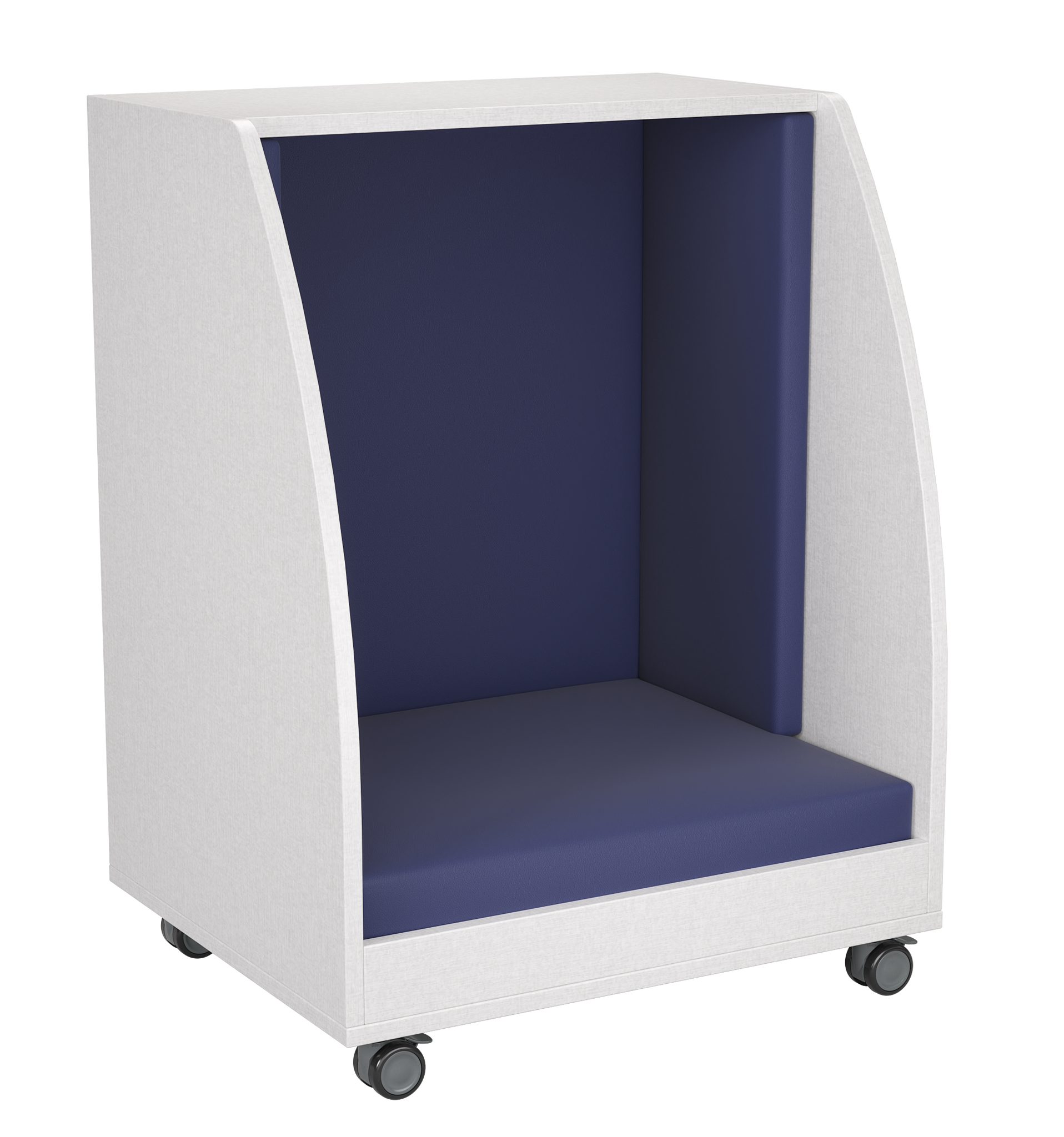 The PeacePod is a compact, mobile privacy pod designed to give students a quiet, calming space within any learning environment. With its cozy upholstered interior, durable wood exterior, and smooth-rolling casters, the PeacePod creates an inviting retreat for reading, sensory breaks, reflection, or focused independent work. Its enclosed design helps reduce distractions, supporting emotional regulation and improving classroom flow.