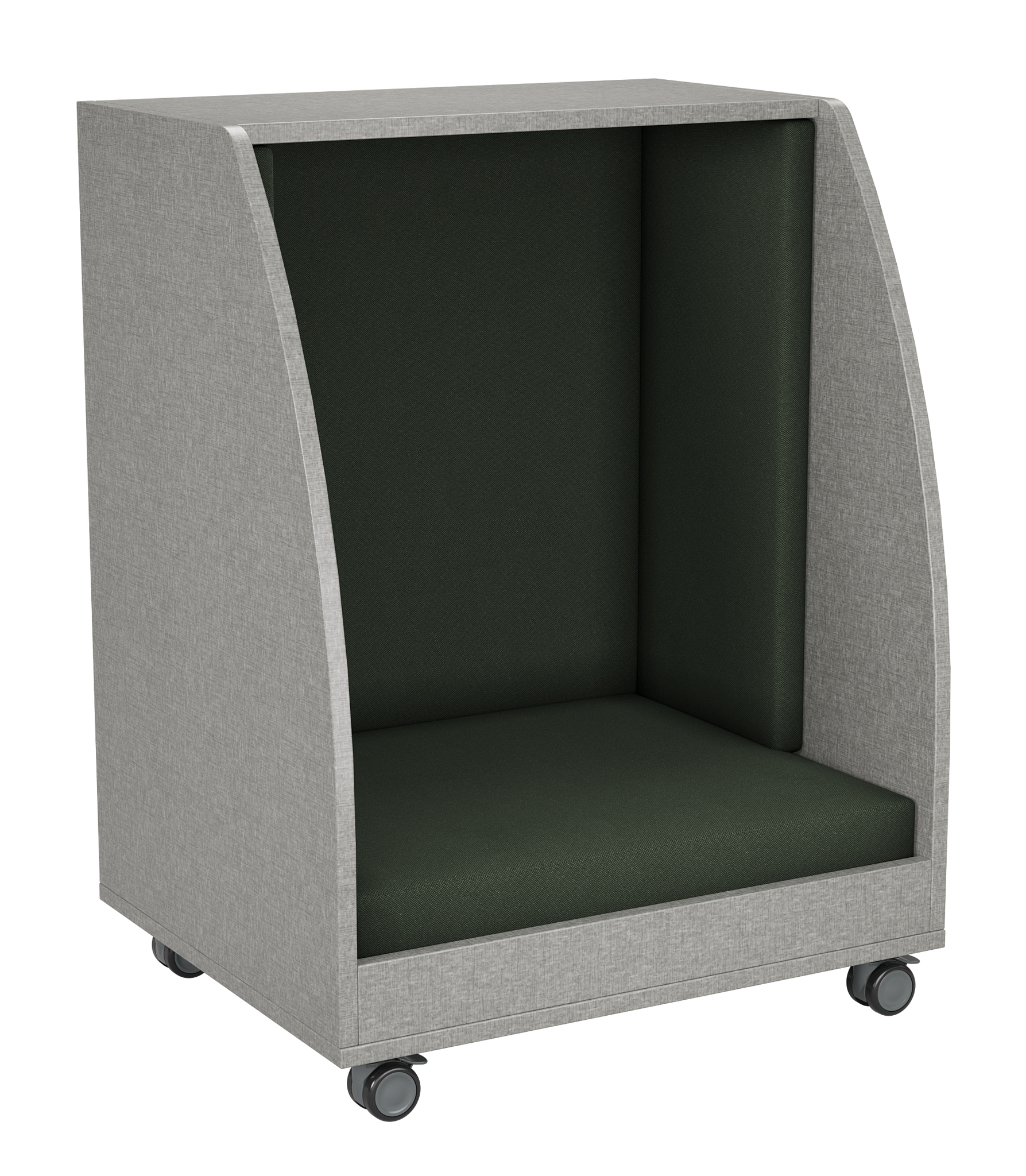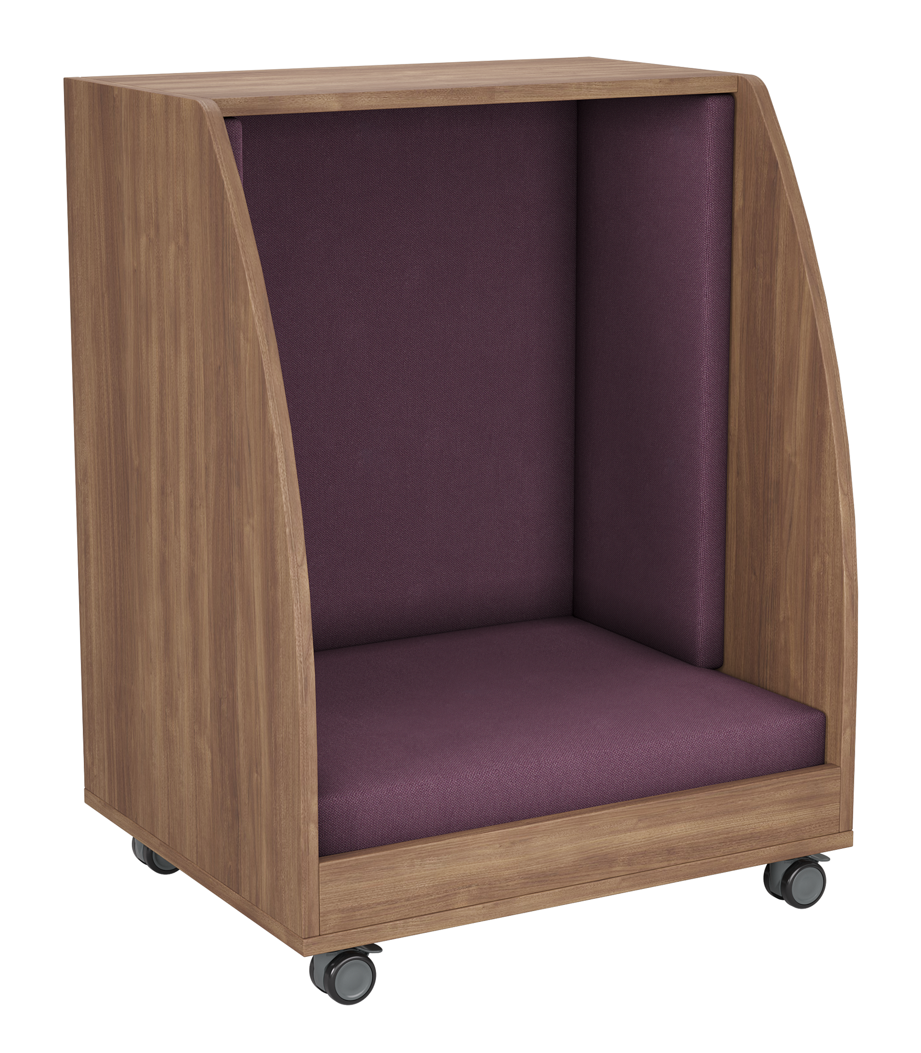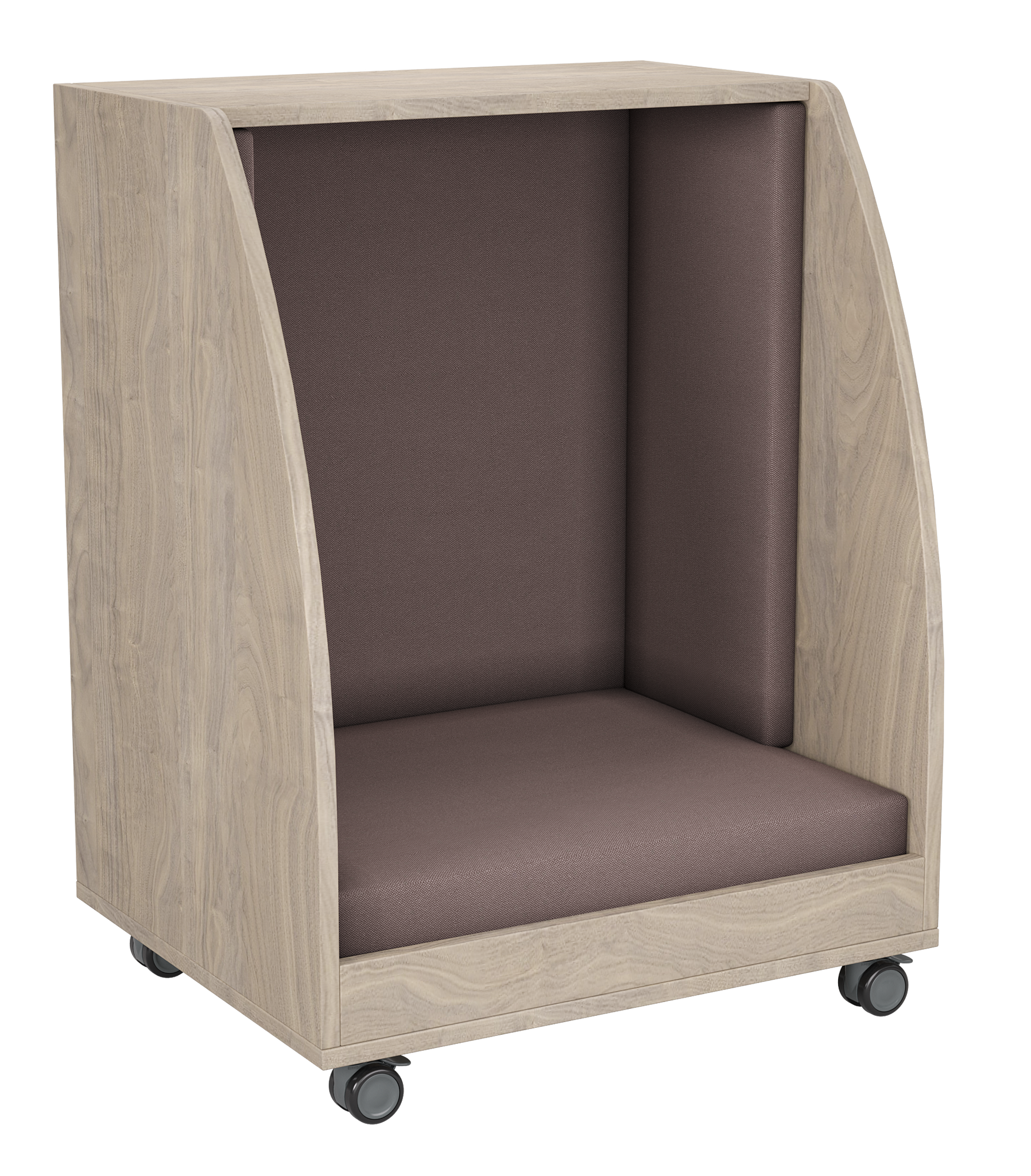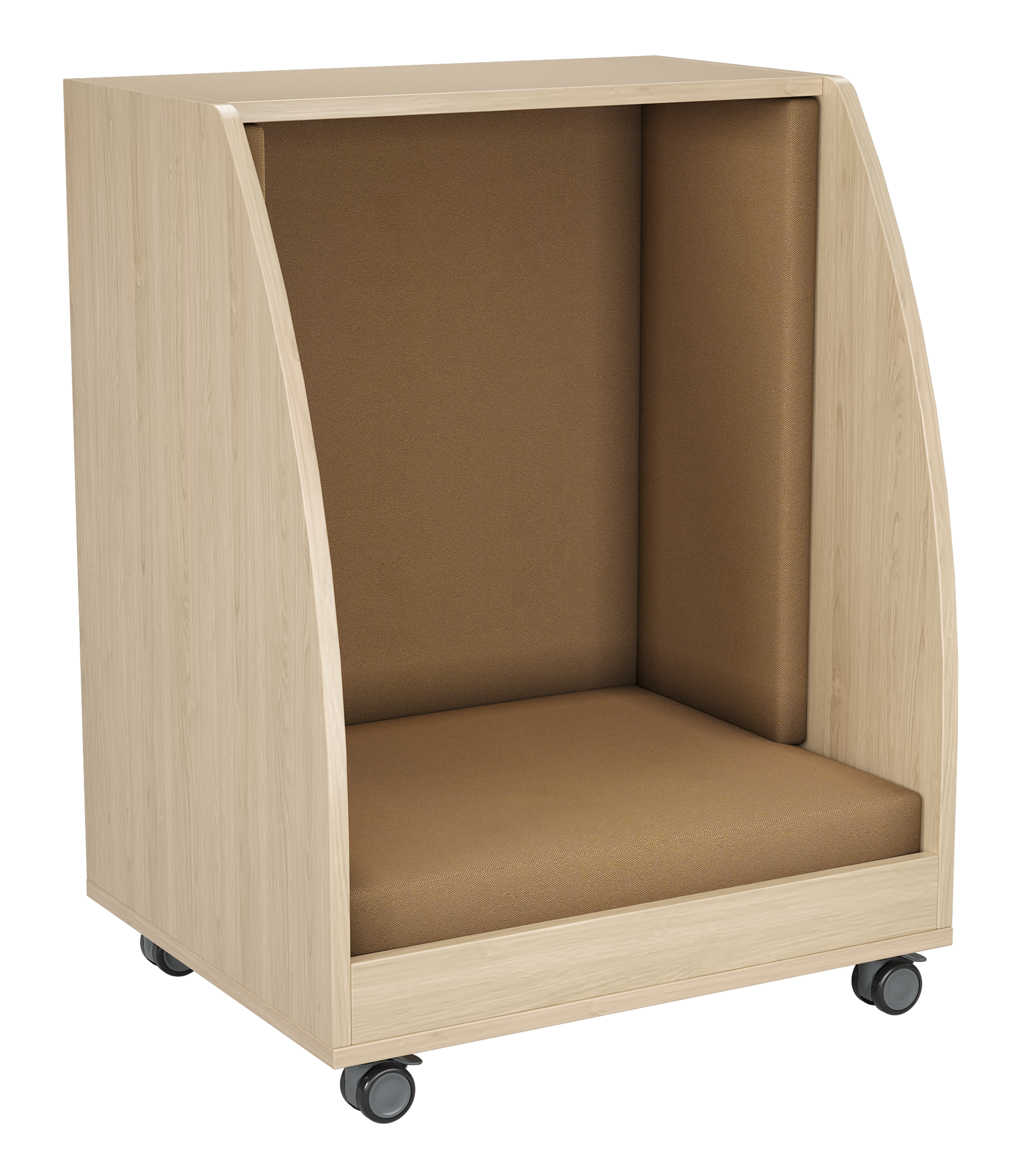 The PeacePod is a compact, mobile privacy pod designed to give students a quiet, calming space within any learning environment. With its cozy upholstered interior, durable wood exterior, and smooth-rolling casters, the PeacePod creates an inviting retreat for reading, sensory breaks, reflection, or focused independent work. Its enclosed design helps reduce distractions, supporting emotional regulation and improving classroom flow.