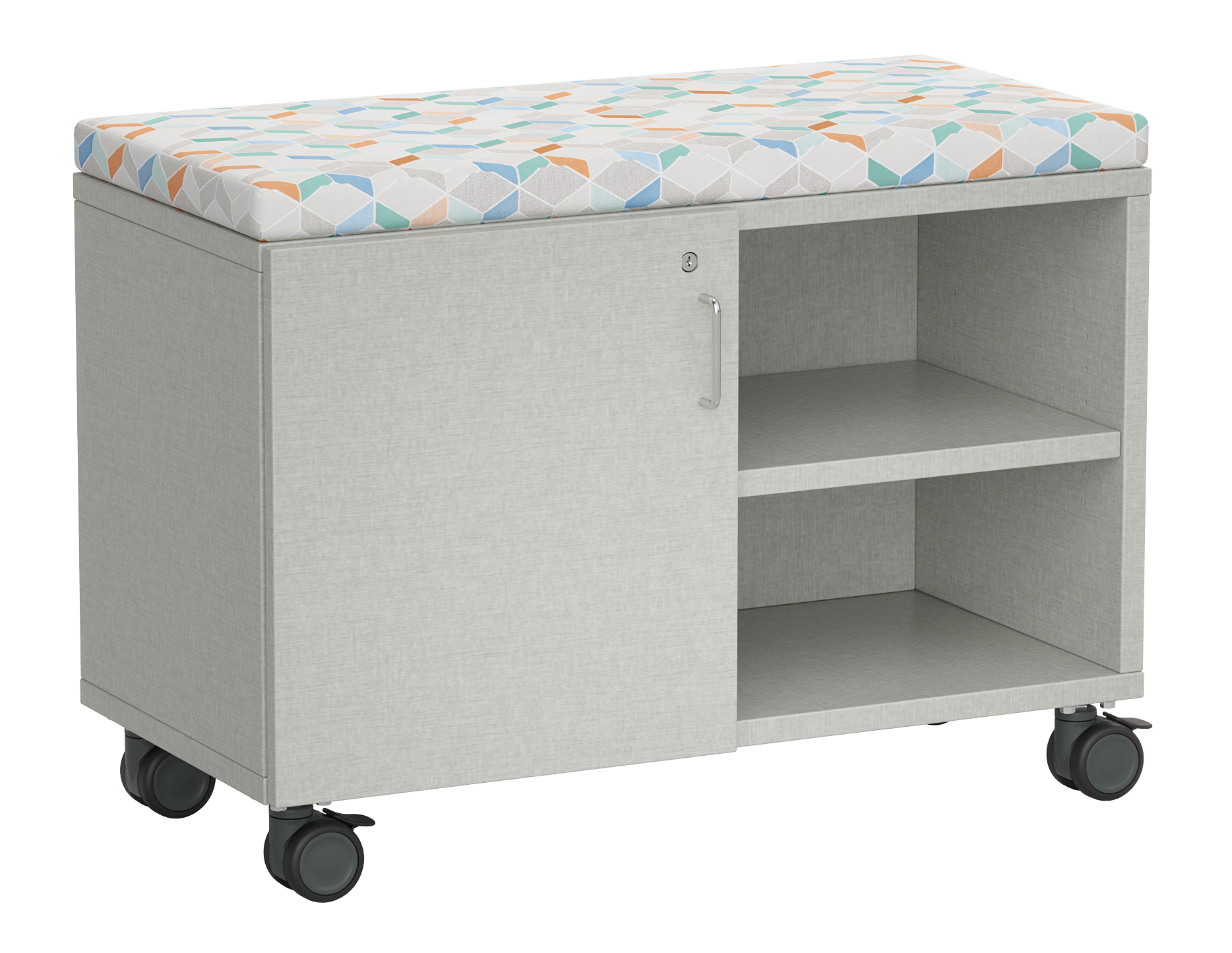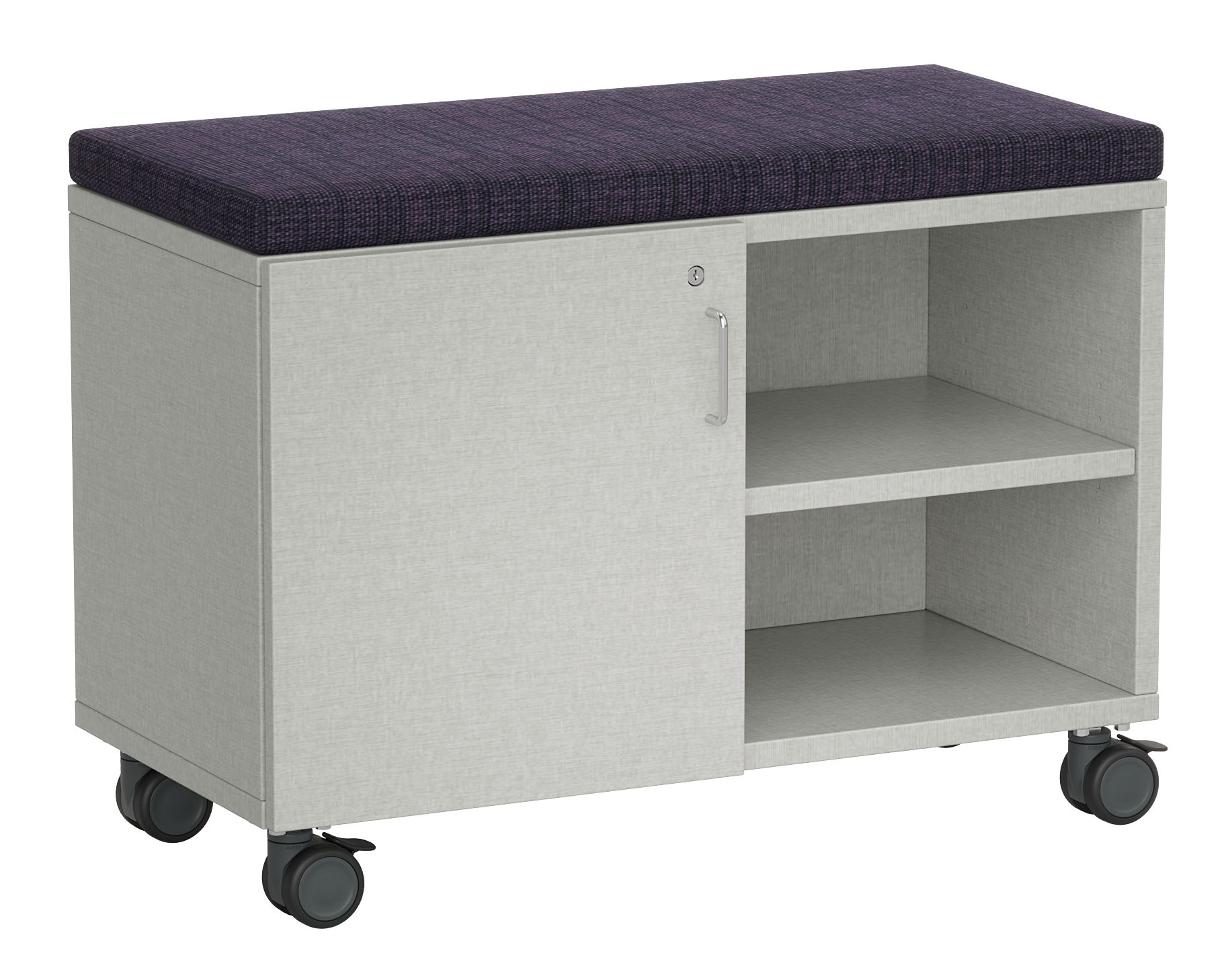 The Teacher Bench combines comfortable seating with secure, mobile storage—all in one compact unit. Designed for flexibility, it includes a lockable cabinet for personal or sensitive materials and open shelving for quick-access items. Add the optional seat pad to create an inviting perch for teacher–student conferences or small-group check-ins, or use it without the pad for a sleek, functional surface. With durable casters that move easily around the classroom, this bench keeps your essentials close and your space adaptable.